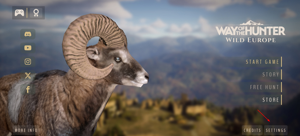 1、进入猎人之路狂野欧洲游戏后,点击右下角Settings;