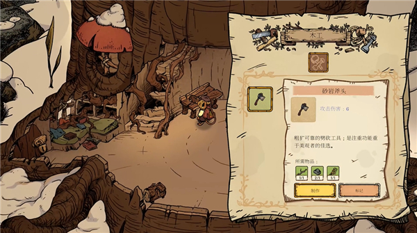 你可以在洞穴里的木工工作台上制作这两种材料。材料够了,回到桥上与之互动修复。完成后,穿过桥就能找到阿姨!