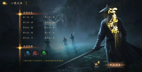 每日参与活动通过十关挑战可获得大量经验和心魔宝箱!