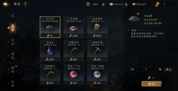 当前版本加入了全新的帮会商店,可以通过消耗帮贡购买多种类道具