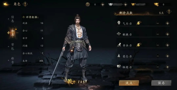 每个职业加点共分为:气力、敏捷、身法、意志、体质,各个职业增加的属性点,对应不同的属性