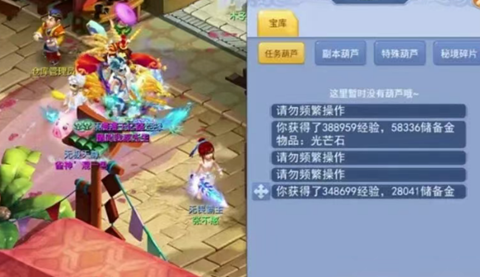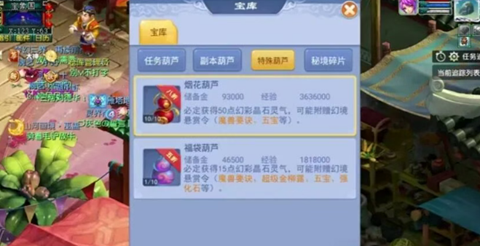 副本探索:参与车迟国、乌鸡国等副本,消耗精力破解封印获取副本葫芦,葫芦可出售换取精力或直接开启获得经验、储备金及随机物品。