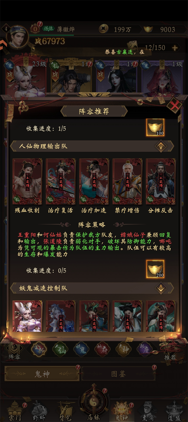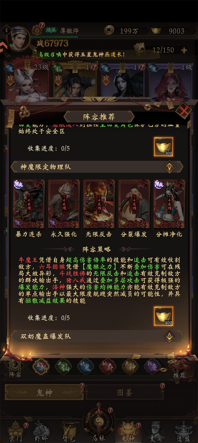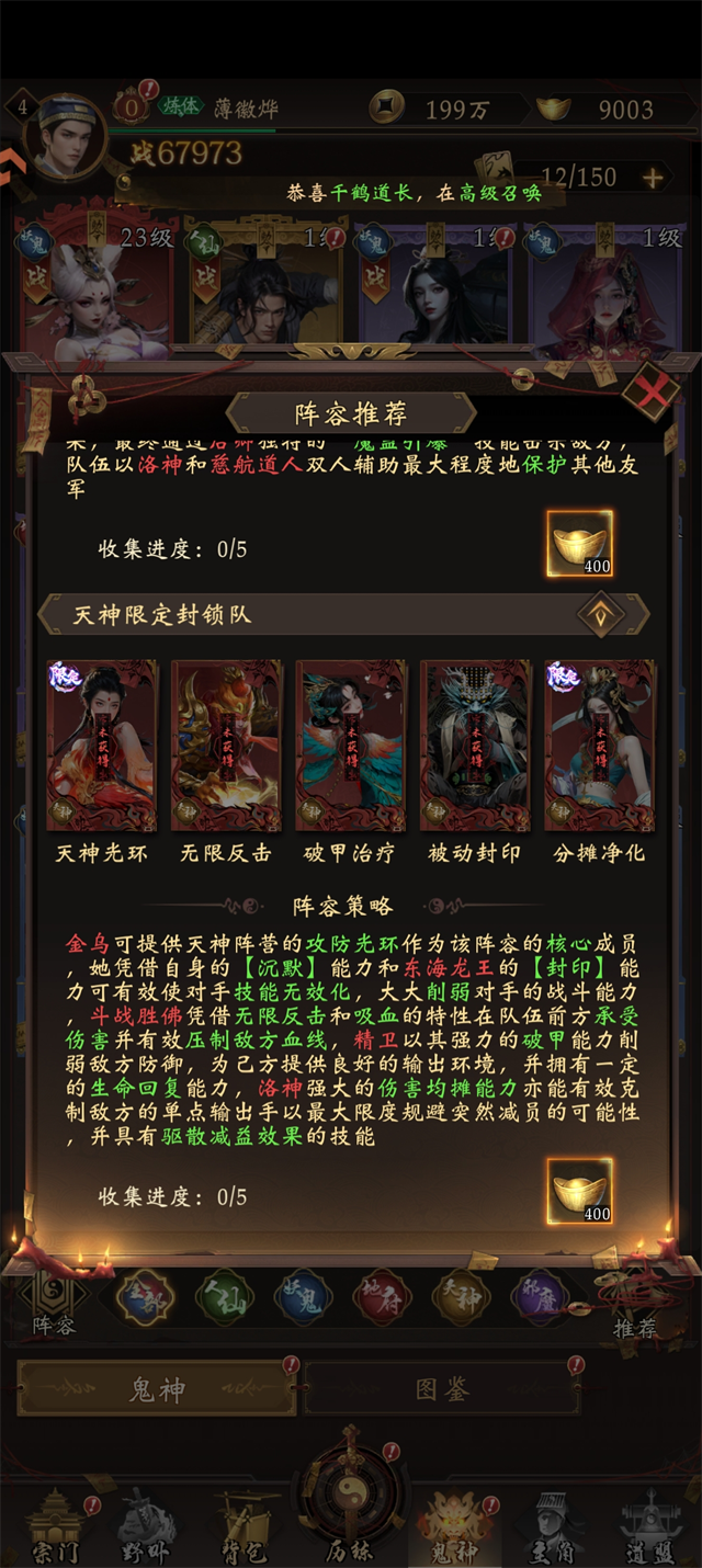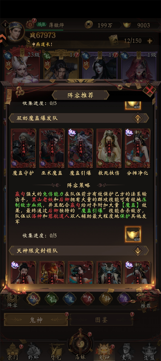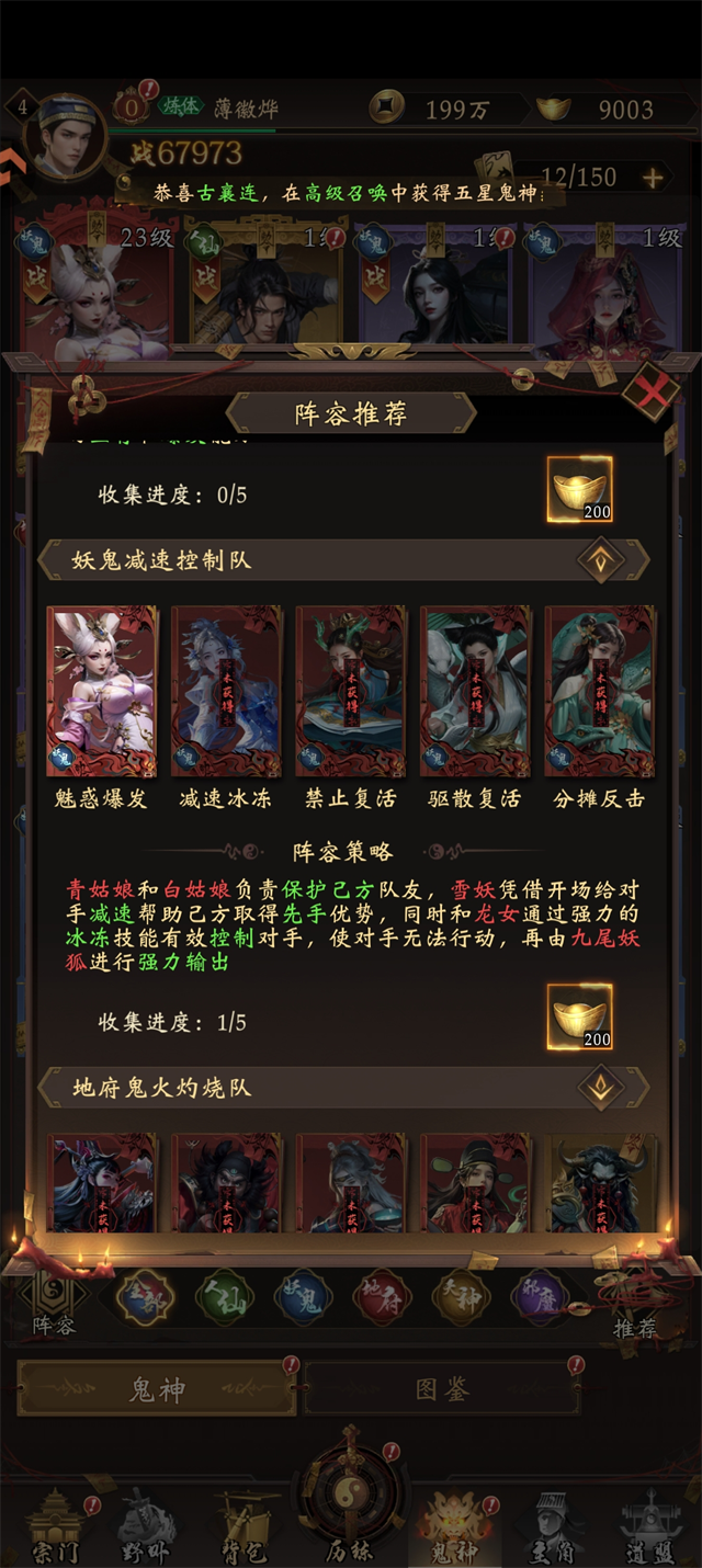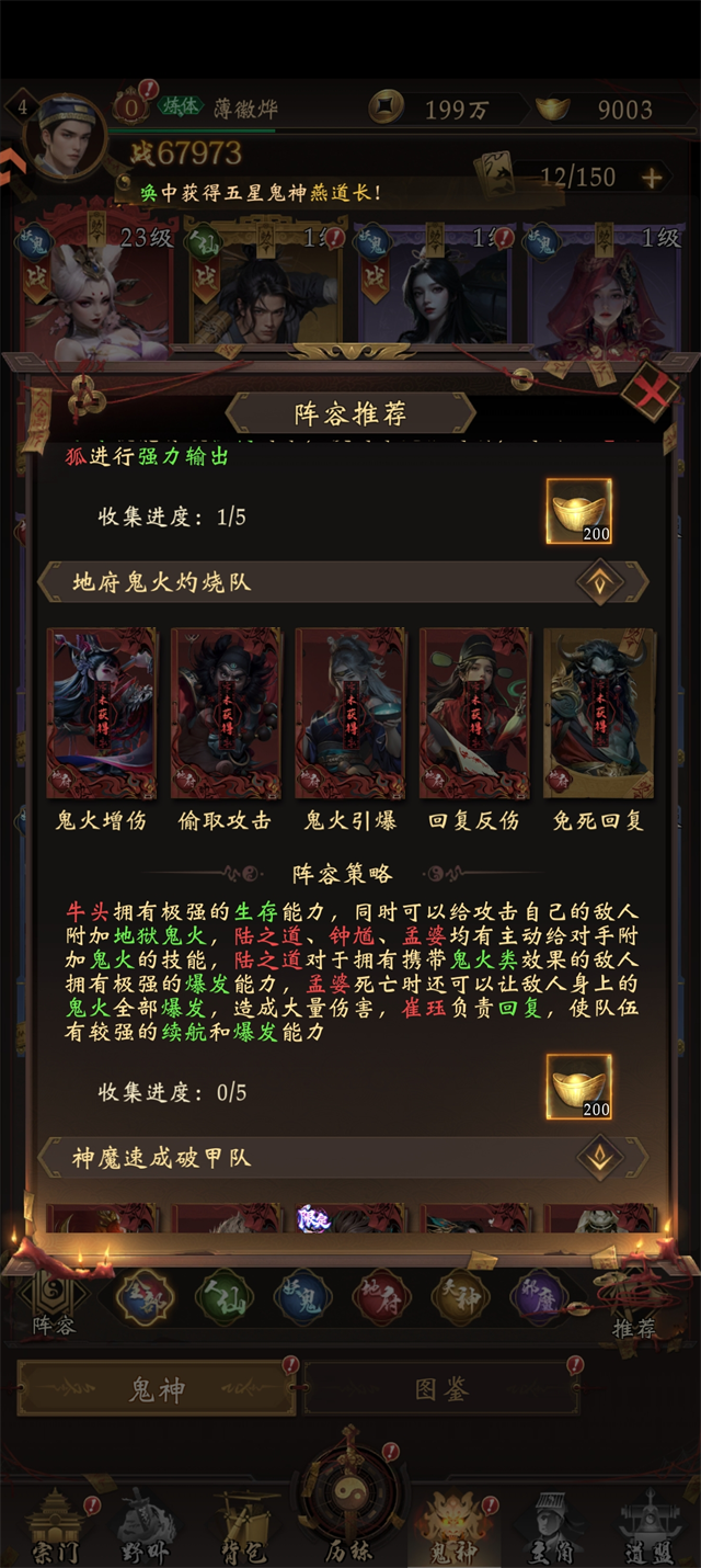 阵容组成:牛头+陆之道+钟馗+孟婆+崔珏