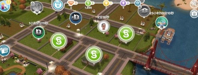 每隔一段时间,当玩家打开城镇地图时,就会看到地图上解锁的建筑物顶部出现模拟货币奖励,点击即可领取。这些建筑物不仅包括市民的住宅,还包括公园和商店等建筑物。即使里面没有公民,他们仍然会获得奖励。