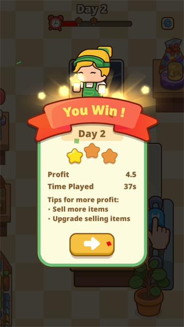 3、随着关卡的推进不断解锁更多全新的商品,搭配上每日目标和特殊活动,带给你更加休闲有趣的体验。
