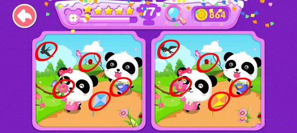 宝宝来找茬是宝宝巴士推出的一款找茬益智早教游戏,游戏画风采用Q版呆萌可爱的形式展现,专为4-5岁小朋友设计,在这里小朋友将通过与熊猫奇奇寻找图片的不同,关卡玩法多,玩家需要仔细找寻不同点,才能够通关,难度系数不同,可以充分的训练孩子的观察力和分析能力,用游戏让孩子在学习中成长,让孩子学会独立思考,提高学习主动性,享受探索世界的乐趣!