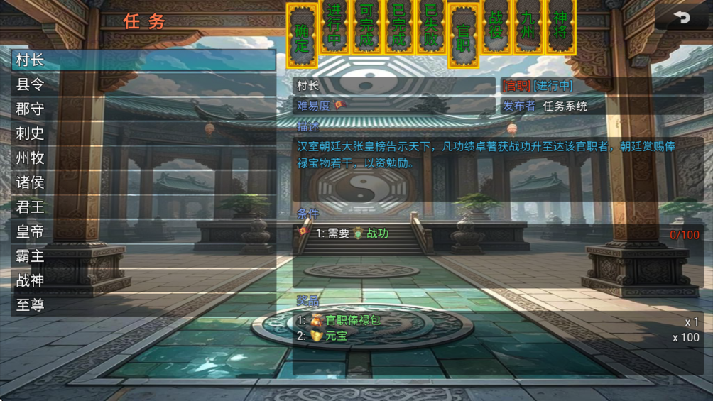 16.调整新增全新【副本-汉末终焉】,开放官职:★★★至尊★★★