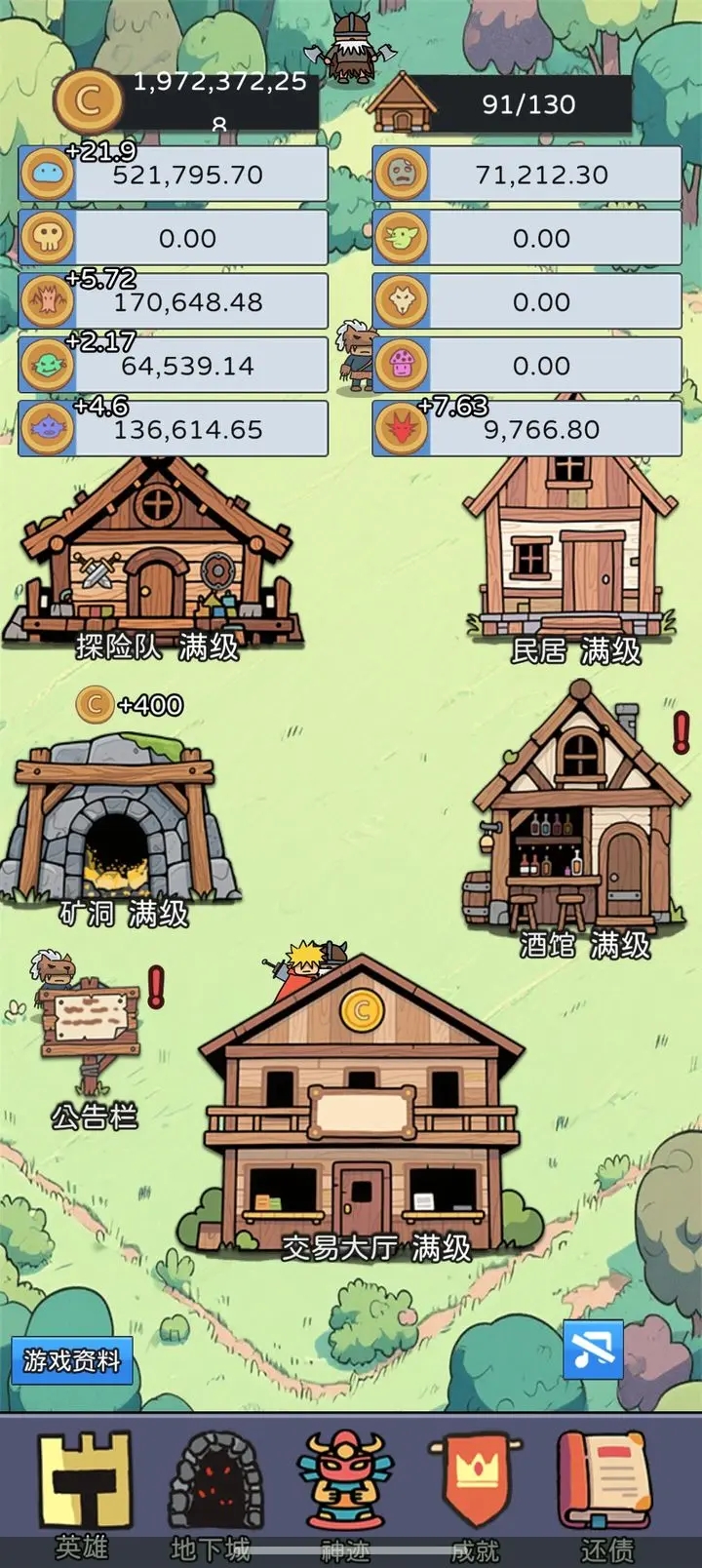 2、前期一定要先把金币收益和离线收益先点上来。毕竟睡觉都有更多钱拿是最爽的。而英雄最高等级则可以放到最后再升级,毕竟前期根本升不到最高级。