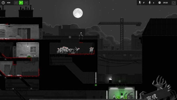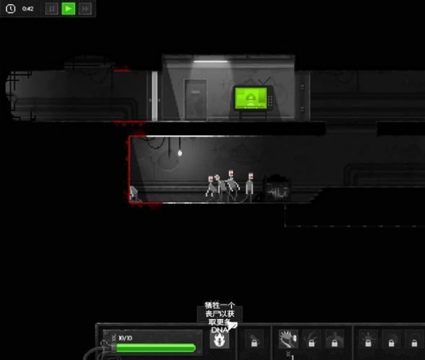 用自爆来破坏枪手前面的保护墙,因为越到后面人类的抵抗是会越来越强烈,所以在遇到火力过猛最好用自爆来将人类感染,只要沾到僵尸的血都会被感染。在地图中下方获得了一次注射的机会,后面也没有太多需要注意的地方,看到有攻击力的人类就选择自爆基本都没问题(僵尸的自爆对同类没有伤害,只有击飞效果),有些距离稍远的枪手直接选择注射病毒就OK了。