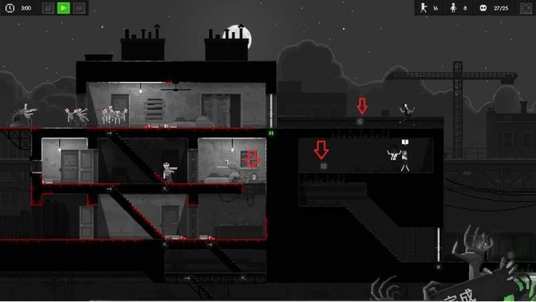 1、游戏开始先破坏楼梯上的电源,让后面的僵尸顺利进入下面。捡到疾跑技能后再使用技能保证僵尸不被掉下去。