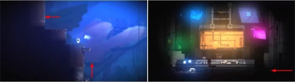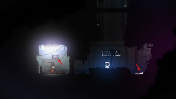 收音机后向左继续,你会发现一个Sheepy会掉落的洞口,然后向右移动。走出隧道后,你会找到下一个房间。它相当简单,右墙有三个台阶,并有一个平台通向房间的上层区域。