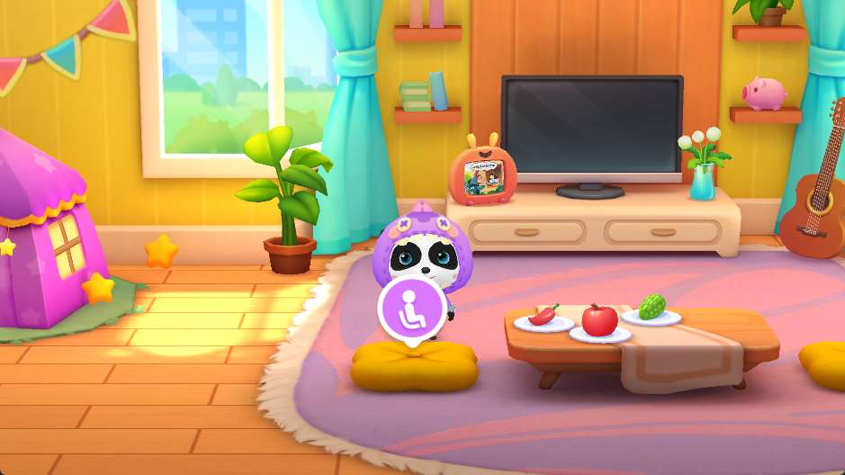 2、游戏提供了非常多的场景,宝宝可以点击感兴趣的图标(如“可口冰淇淋”),将桌子上的食物吃掉就可以就解锁功能模块。