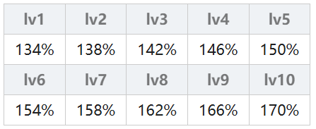 原文为ダメージ UP,由魔法技能提供,分为普通的伤害up和属性伤害up,普通的伤害up为所有技能都可以吃到的buff,属性伤害up只能让持有指定属性魔法的队友获得buff,在技能介绍中可以看到该张卡的技能是否会提供伤害up的buff。伤害up的加成同样与技能等级有关,详细可见下表。注意:伤害up的加成效果并不及ATK up。