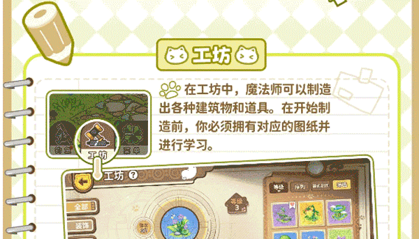 通过将精灵安故在生产建筑中,生产建筑将会持续产出特定的物品,入驻工作的精灵将会持续消耗精力。