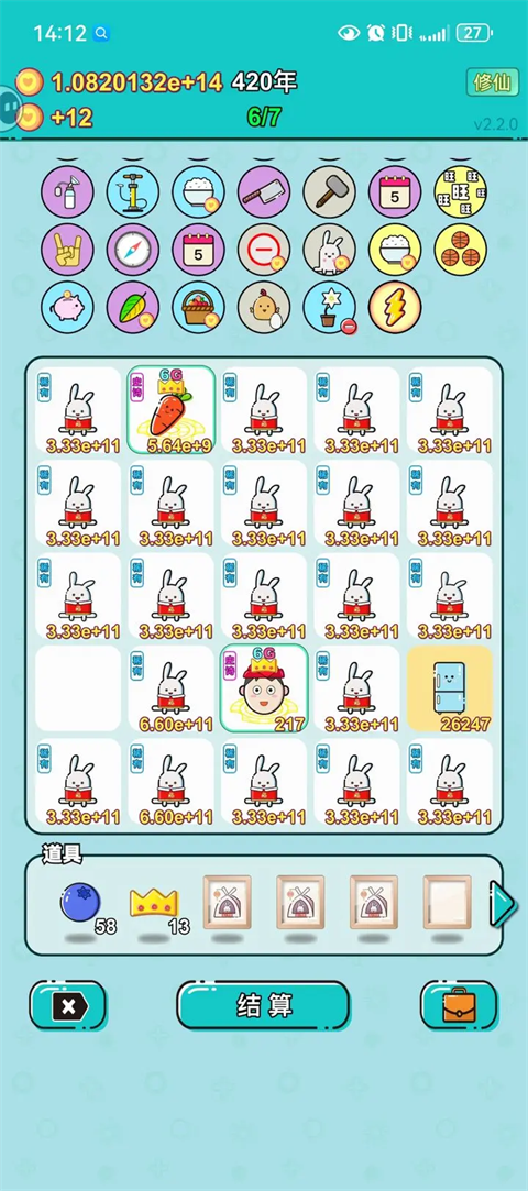 注意:理想状态是每次结算萝卜都能吸六个,偶尔可能吸不满;如果兔子不繁殖就删几个兔子留点空。