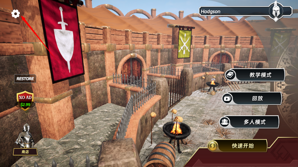 1、用户打开游戏进入主界面,点击左上角的齿轮图标