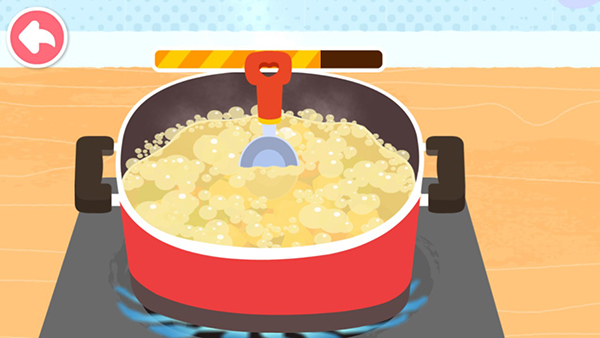 7、之后就是最重要的搅拌环节啦!让宝宝按住锅勺进行搅拌,等待上方进度条满了就完成啦!