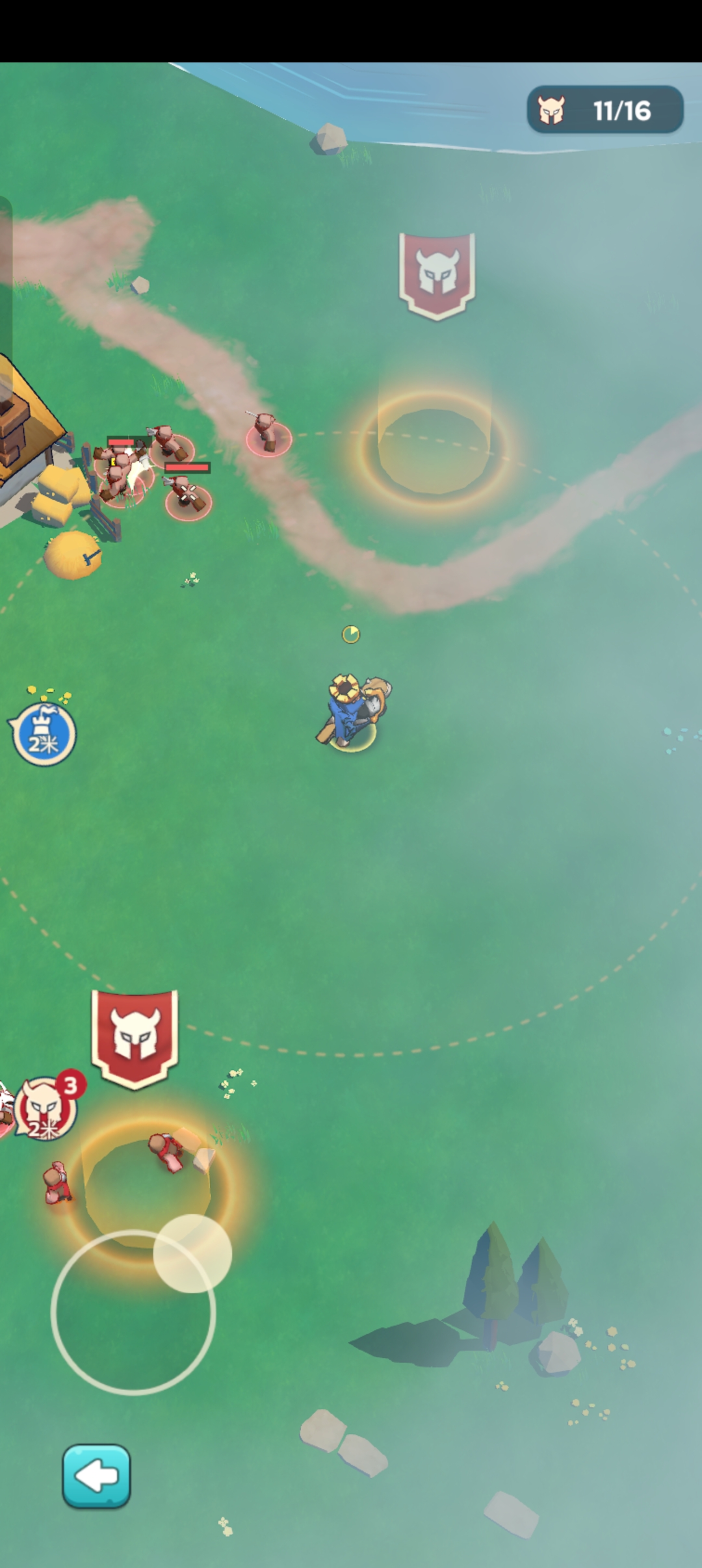 4、发育过程中会有不断地敌人来袭击,滑动屏幕可控制角色移动自动攻击。