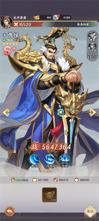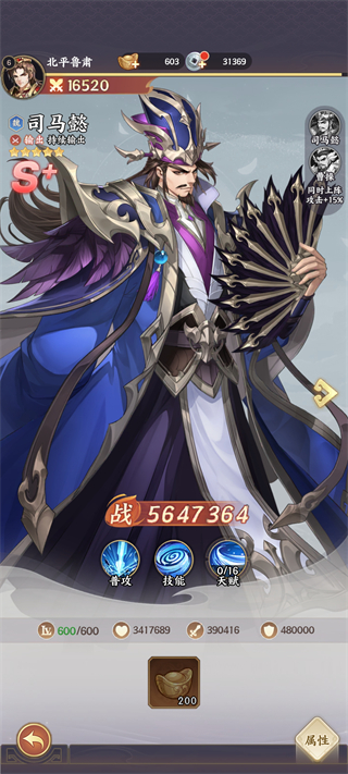 技能:对敌方全体造成 105% 法伤,50% 概率挂 “鹰视狼顾”(目标受直接伤害时,额外叠 5% 司马懿攻击的法伤,持续 3 回合且可叠加),配合多段伤害队友能最大化输出。