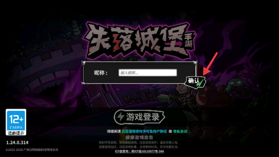 1、打开游戏后点击游戏登陆。
