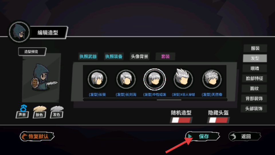 3、创建角色造型点击保存后即可开始游戏。