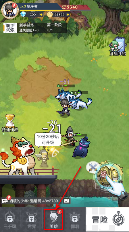 4.如果战力不够还可以选择英雄