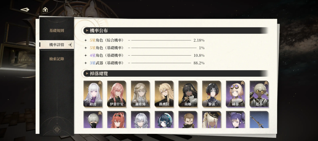 武器池必为当期限定,概率1.5%,保底50抽,25抽后每5抽翻倍。