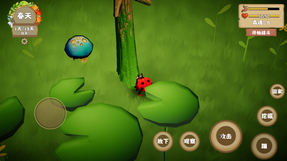 1、从第一人称的角度模拟瓢虫,体验12天的生存挑战;