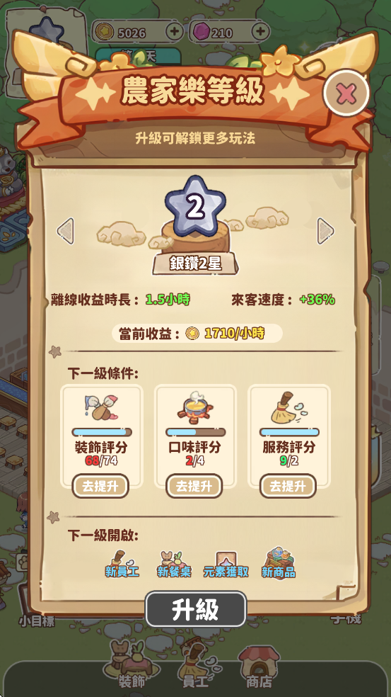 3、在建筑施工、解锁和建造餐厅主体、配套设施、装饰景观等各类建筑方面拥有高度的自由度,通过优化运营模式、提高服务质量、扩大业务类别等不断运营!