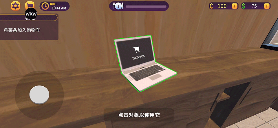 1、进入游戏后,先走到店内的笔记本电脑前,点击电脑即可开启采购界面。