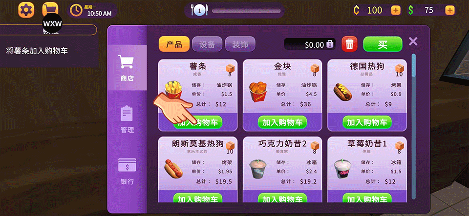 9、顾客挑选好商品后会前往收银台,这时你需要先点击相应商品,再接过顾客递来的现金或银行卡完成交易。