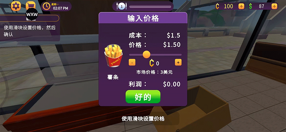 3、在完成不同食物的生产后,玩家可以将它们放在货架上,并为它们设定相应的价格进行销售!