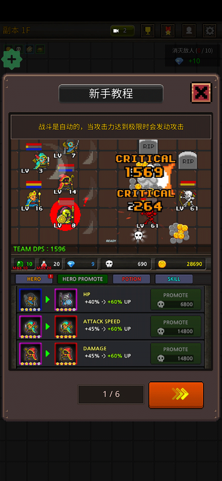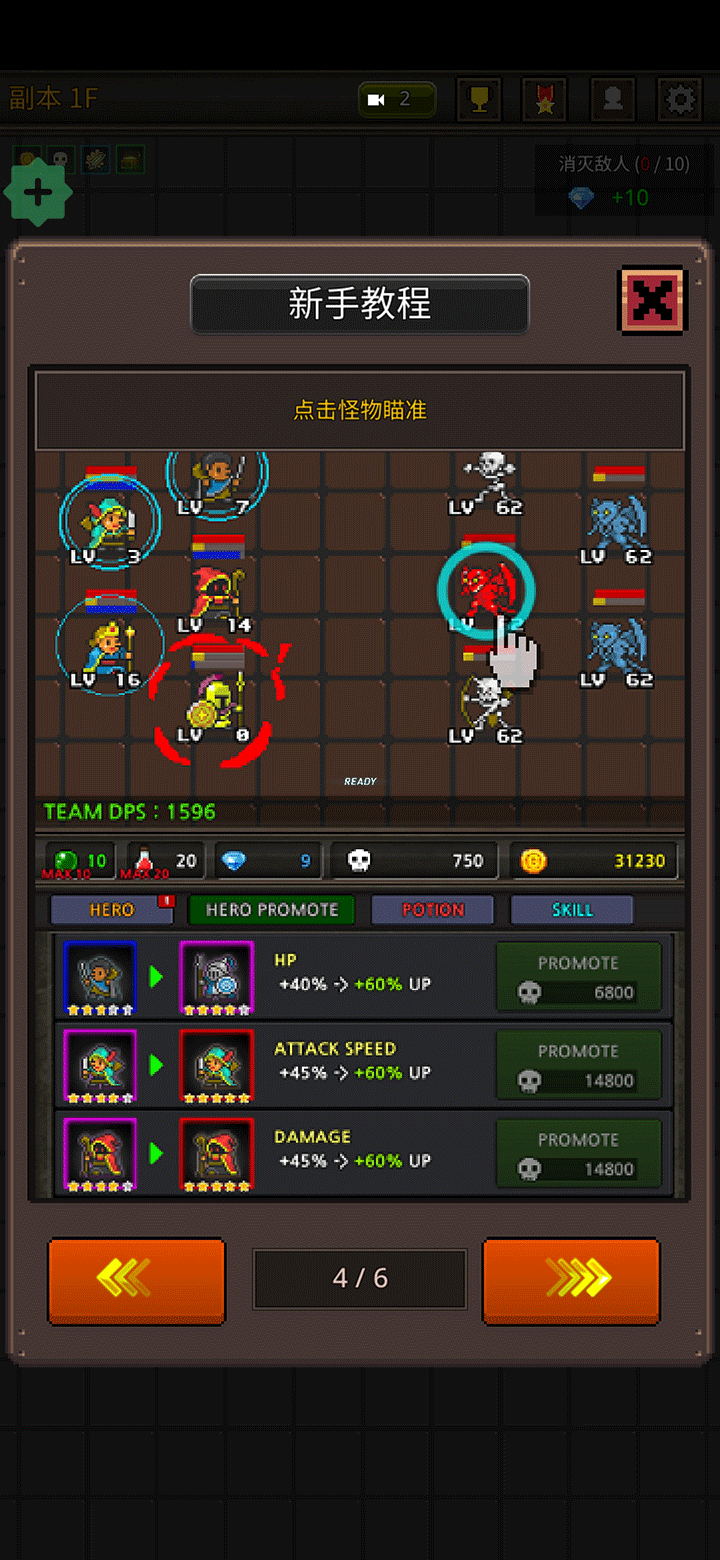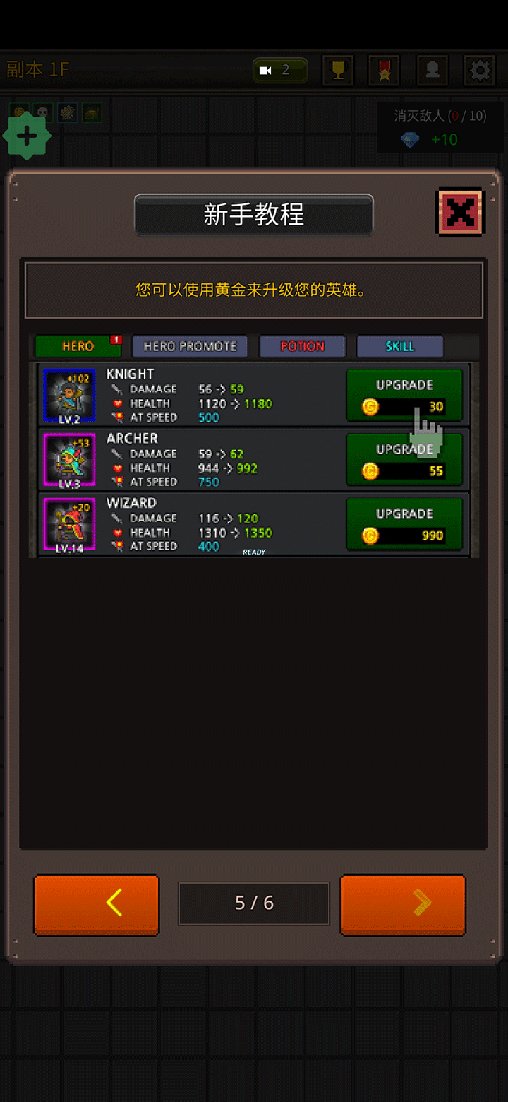 5、每次击败敌人都能获得金币奖励,这些黄金可用于提升英雄等级,加强整体战斗能力。