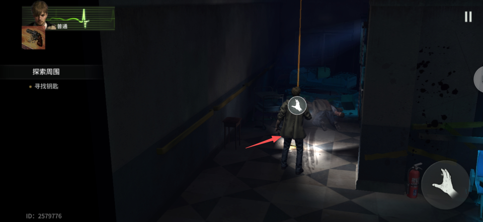 3、沿着走廊直行,再向左侧拐弯,在僵尸游荡的区域附近可以找到一把关键钥匙。