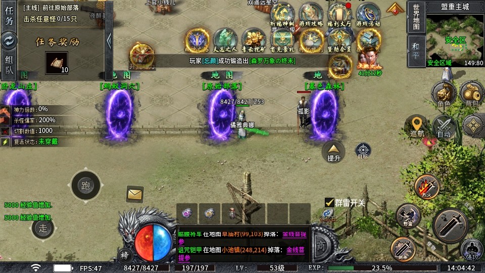 世界BOSS:准时参与世界BOSS活动,不仅能获得经验,还能抢夺首杀奖励,获取稀有道具。