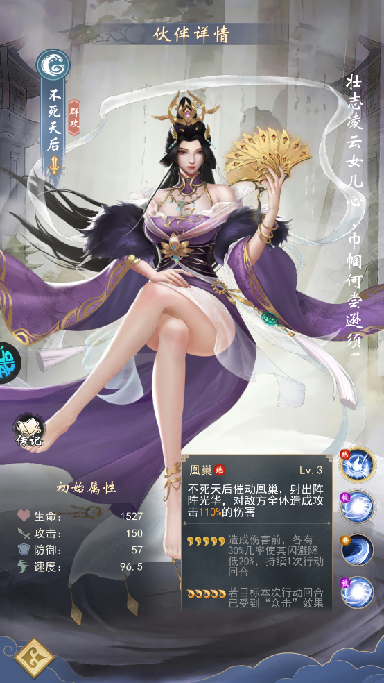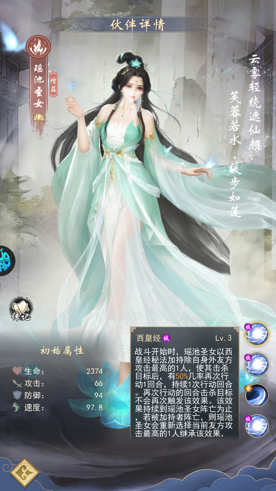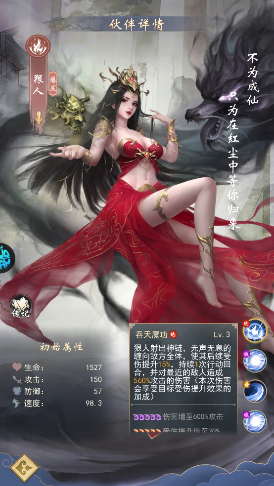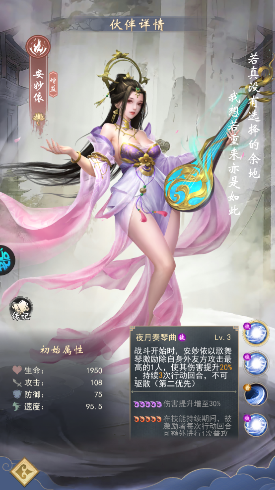 安妙依:仙台境圆满后,主C前三次行动可额外普攻一次,性价比极高。