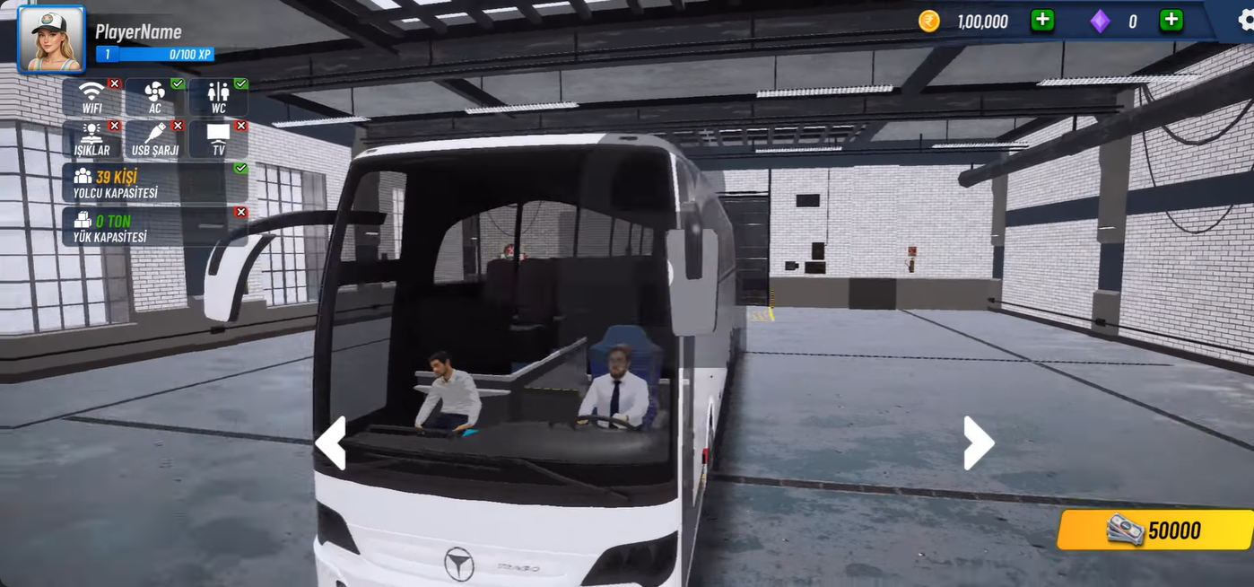 2、在首页左下方可进入车库系统,这里不仅能自由调整巴士的外观样式,还可以使用金币解锁更多不同型号的车辆。
