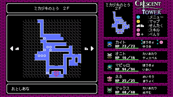新月之塔手机版(Crescent Tower)是一款从Switch平台移植而来的硬核迷宫探索RPG,专为怀旧红白机时代的玩家及RPG爱好者打造。游戏以浓郁的8位机像素风格,重现了昔日的冒险情怀。传说中每隔50年才会在王都·梅尔多姆显现一次的新月塔,从未有人成功登顶,塔顶据说藏有能实现愿望的宝石或长生不老的秘药!
