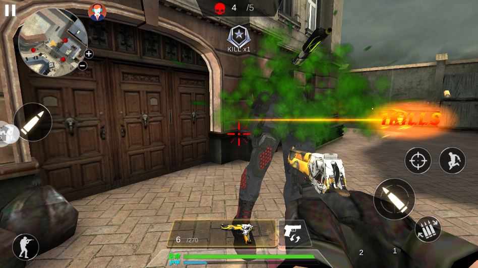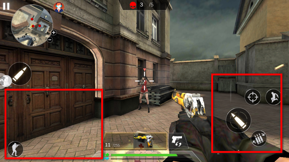 3、左下角可以进行角色移动,右下角进行武器攻击,瞄准敌人进行攻击。