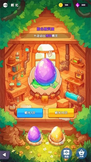 2、消耗道具孵化精灵蛋,紫色精灵蛋十连必出精英精灵,是获取强力伙伴的核心途径。