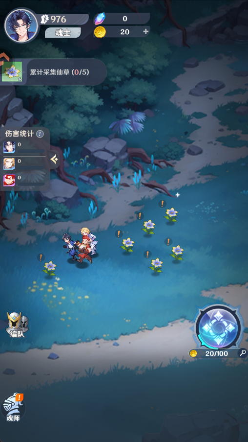 唐月华提供攻击加成,白沉香拉条加速团队节奏。