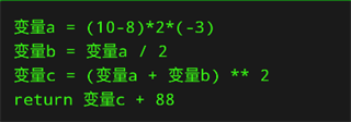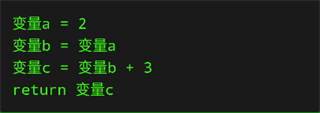 变量可以进行算术运算,变量可以赋值给其他变量。下面的例子,把变量a赋值为2,然后把变量a赋值给变量b,然后把变量b+3赋值给变量c,然后程序输出变量c,最终输出结果是5。