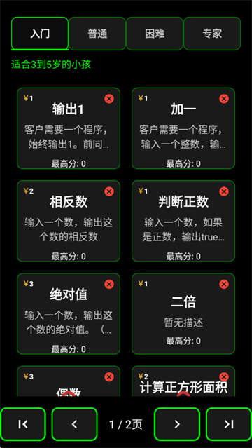 3、从入门到专家四种难度任务等你挑战:入门 → 普通 → 困难 → 专家,每个任务都有详细的描述和测试用例。