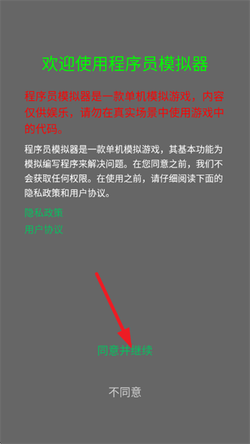 1、首先打开游戏,阅读并同意《用户协议》和《隐私政策》;