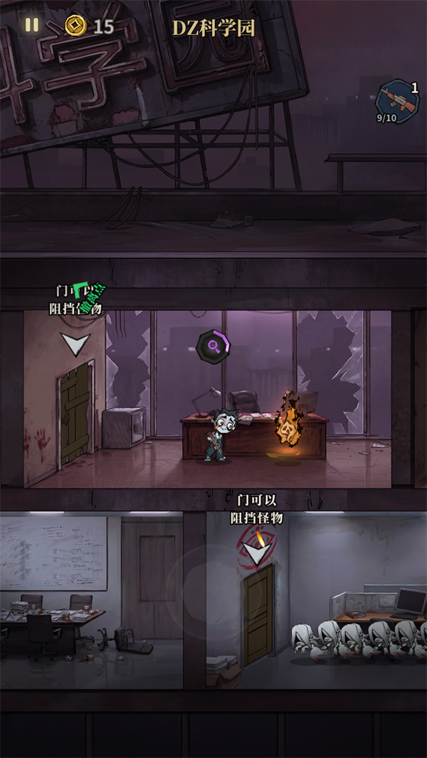 5、门可以阻挡怪物一段时间,角色在楼上也能进行射击。