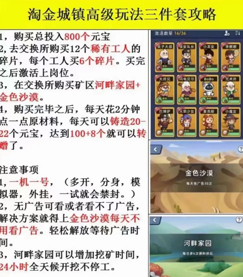 个人建议先把最重要的河畔家园弄到,这个在交换所可以购买到,10个碎片预计100元宝左右,就可以开好。保持工人24小时工作。