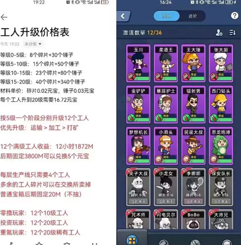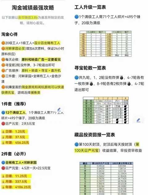 静态收益是很关键的,没弄好的话不会产出金币,就没办法铸造元宝。金币产出量跟工人等级有关,所以工人等级能提上就提上去。