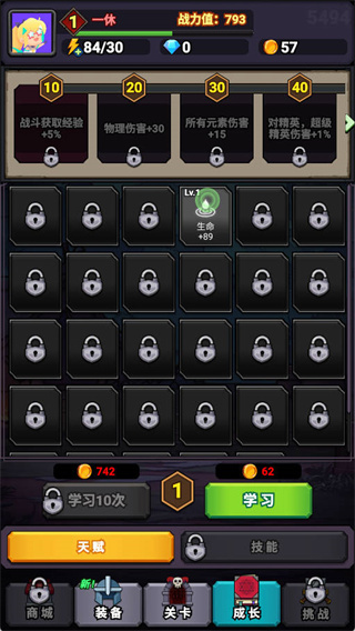每10级解锁高级天赋位(可用钻石开启)。