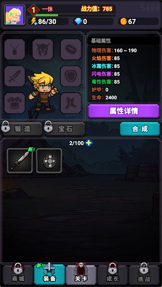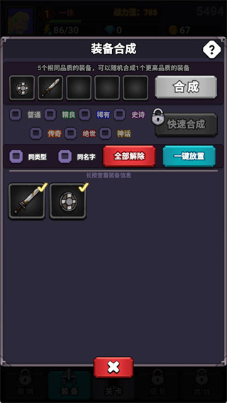 1、跟随游戏引导,熟悉基本操作和合成功能。初期无需纠结,有更高品质的装备就换上,提升战力优先。