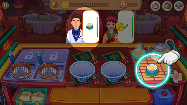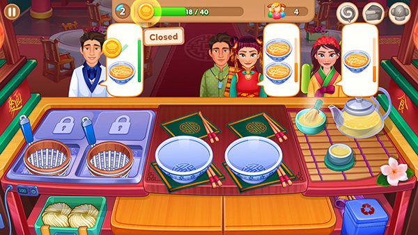 2、简化的亚洲美食和食谱,可在具有时间管理游戏功能的餐厅中快速烹饪。游戏有数百个关卡,易玩难精通。
